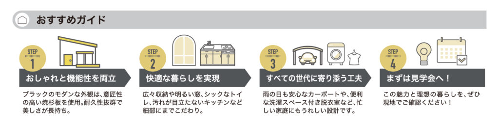 見学会はどのくらい時間がかかりますか?30分~40分ほどあれば全てのお部屋を見て頂くことが可能ですが、土地と家の関係や間取りの考え方、各部屋の特徴などを詳しくご覧になる方は平均1時間30分ほど滞在されます。また、事前に見学希望時間をお伝え下されば、ご予定に合わせてご案内させて頂きます。