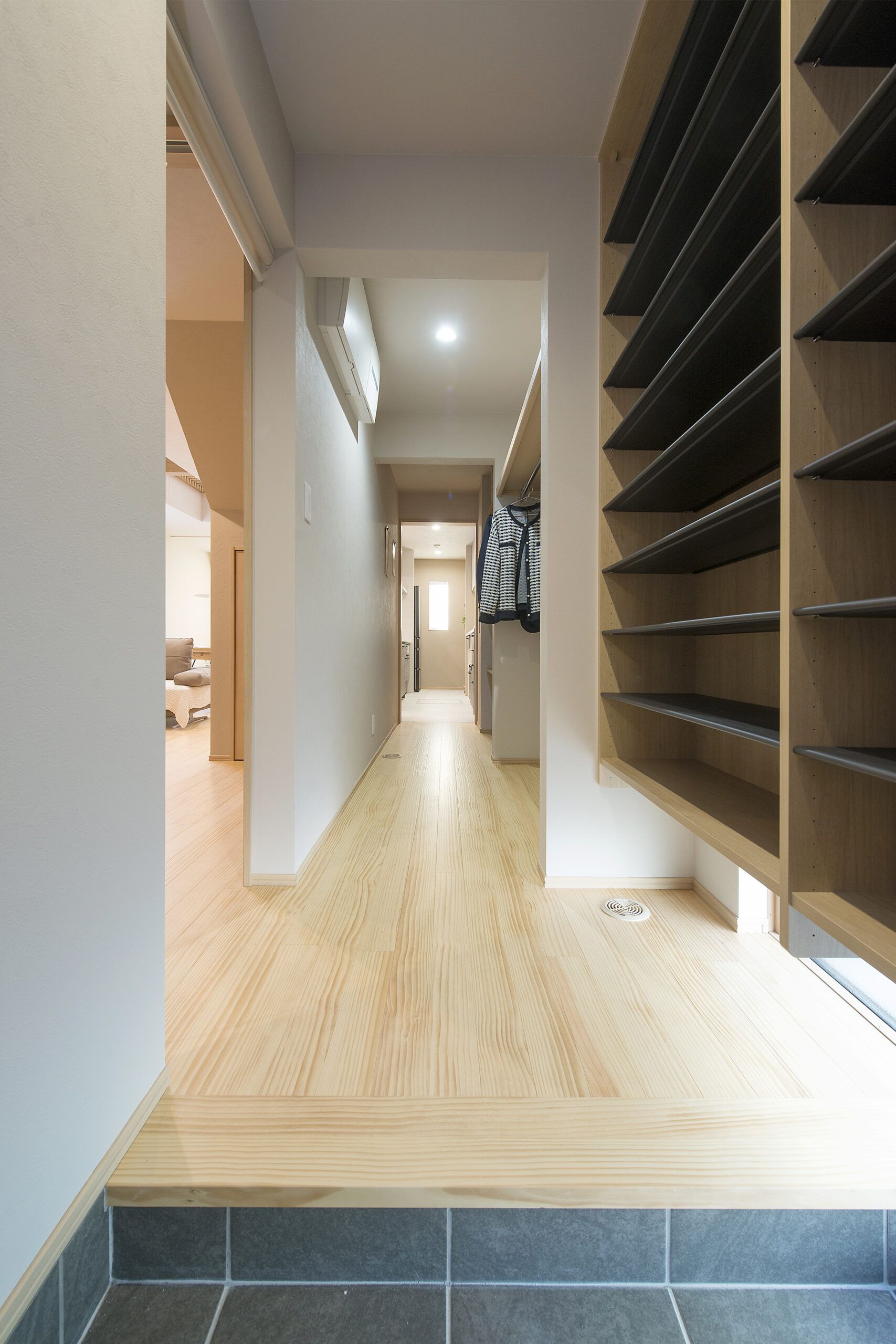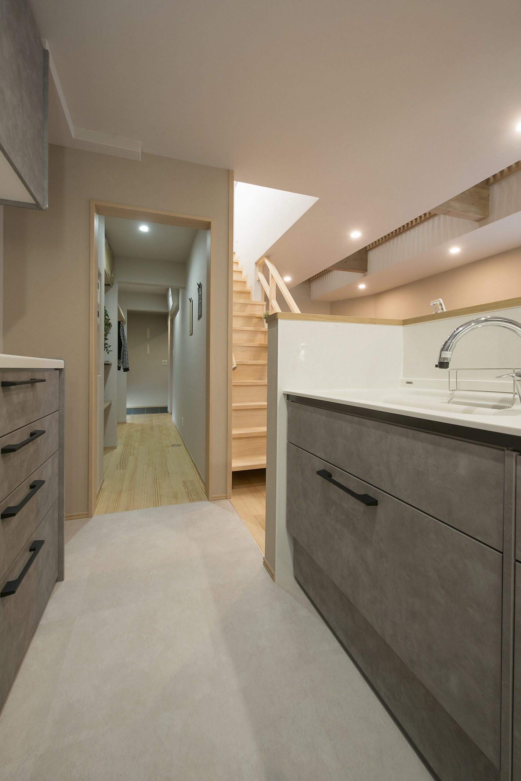 帰宅後は上着を収納してからキッチンへ。動線に沿った収納計画で、暮らしやすさを高めた